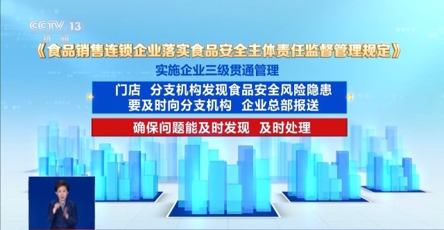 同时,《划定》要求实施企业贯通办理。企业总部、分支机构、门店均要成立并实施“日管控、周排查、月安排”工做轨制和机制,强调风险消息上下贯通,管控办法要逐级监视,门店、分支机构发觉食物平安风险现患要及时向分支机构、企业总部报送,确保问题能及时发觉、及时处置。